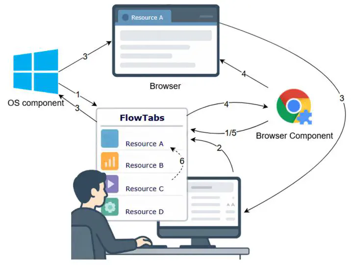 Flowtabs’ workflowThis master thesis explores the design and validation of a context management tool integrated into a development environment. Developers constantly use various resources (documentation, terminal, development tools, etc.), which forces them to frequently switch between their development environment and these resources to meet their needs. This often leads to interruptions, distractions, and consequently, a drop in productivity. To address this issue, the study proposes a solution in the form of an extension for the Visual Studio Code IDE, called FlowTabs. This extension brings resources together into a unified interface and uses a relevance algorithm that adapts to the developer’s behavior to suggest the most appropriate resources. User testing has shown that it integrates well into the development environment, offering a satisfactory developer experience, cognitive comfort and effective resource management. This work thus provides an original context management solution, directly embedded in a development environment.