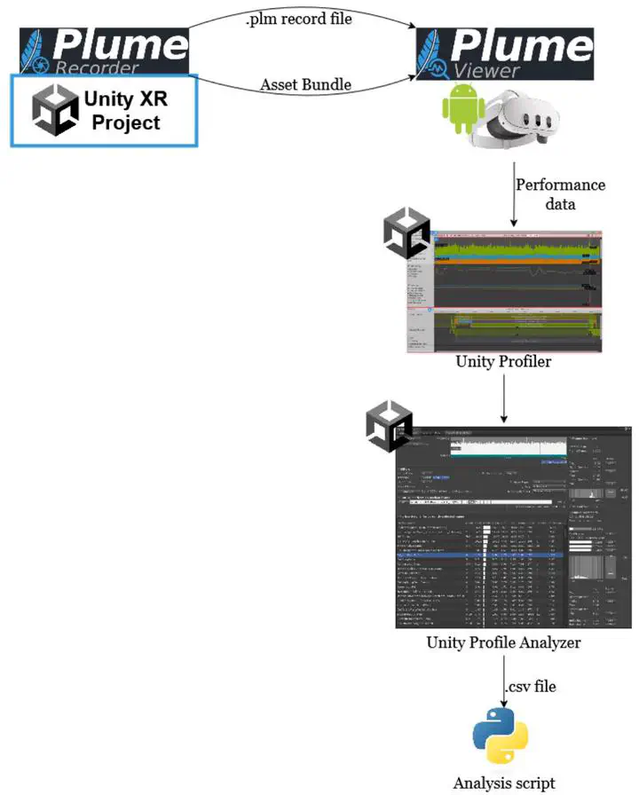 Performance testing workflowSoftware engineering for mixed reality headsets is still in its early genesis even though the required hardware for it has been available for several decades. Existing methods to streamline development are still limited and developers often find themselves doing things manually. Mixed Reality system testing, for example, are often done by hand by developers who have to wear the headsets and do the testing as if they were an end user. This is a significant time sink in the development process.